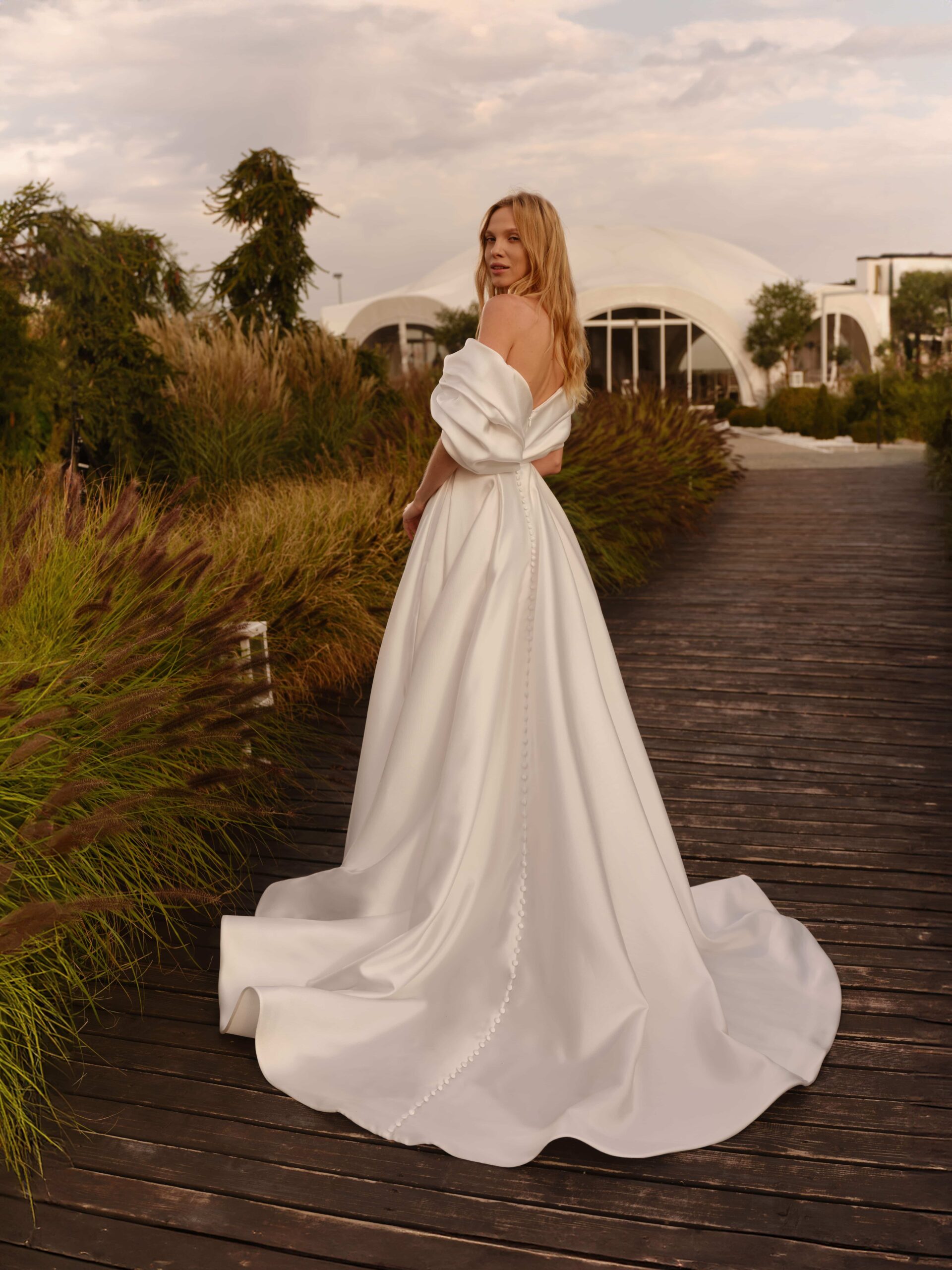 Elegant voluminous dress made of delicate satin.