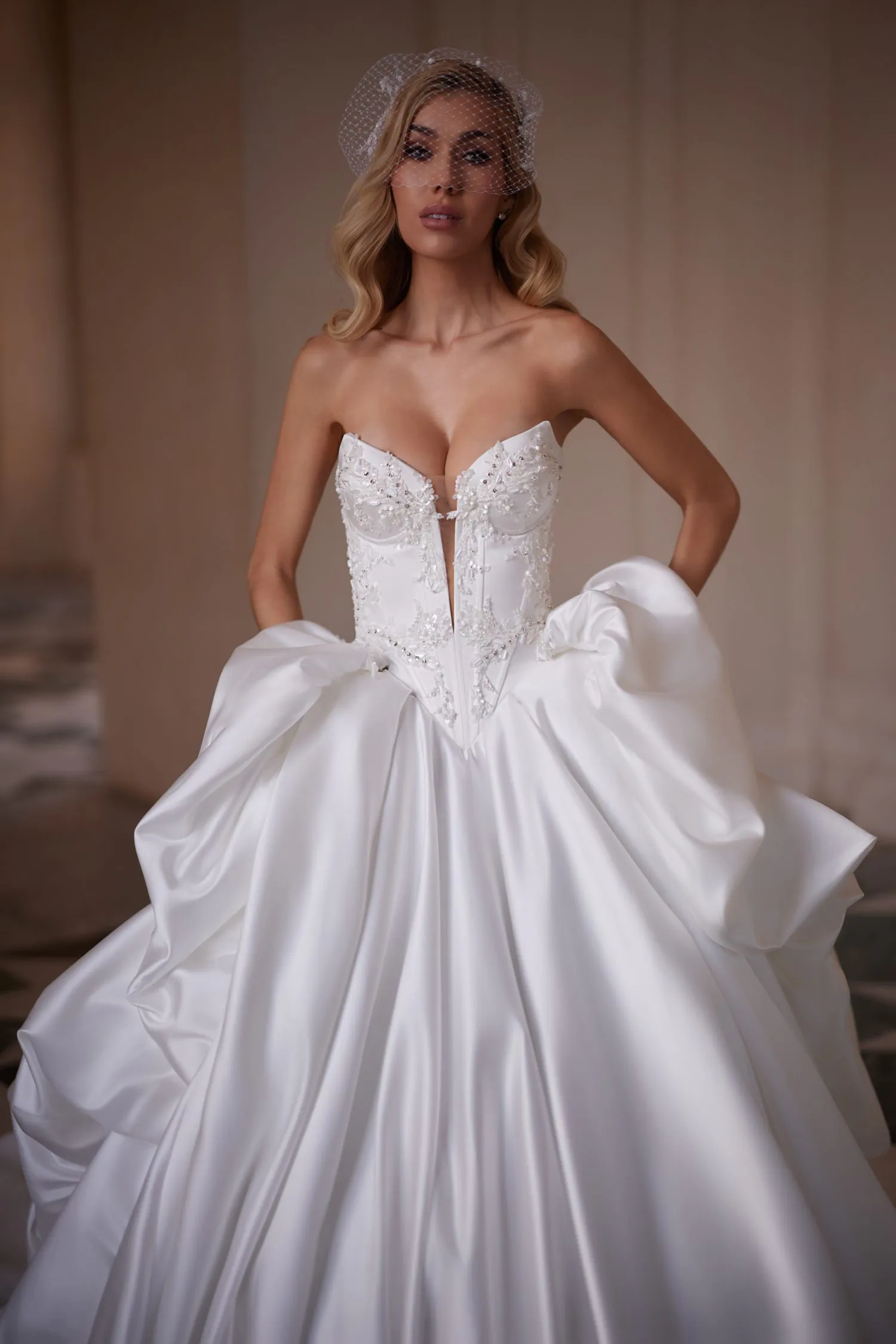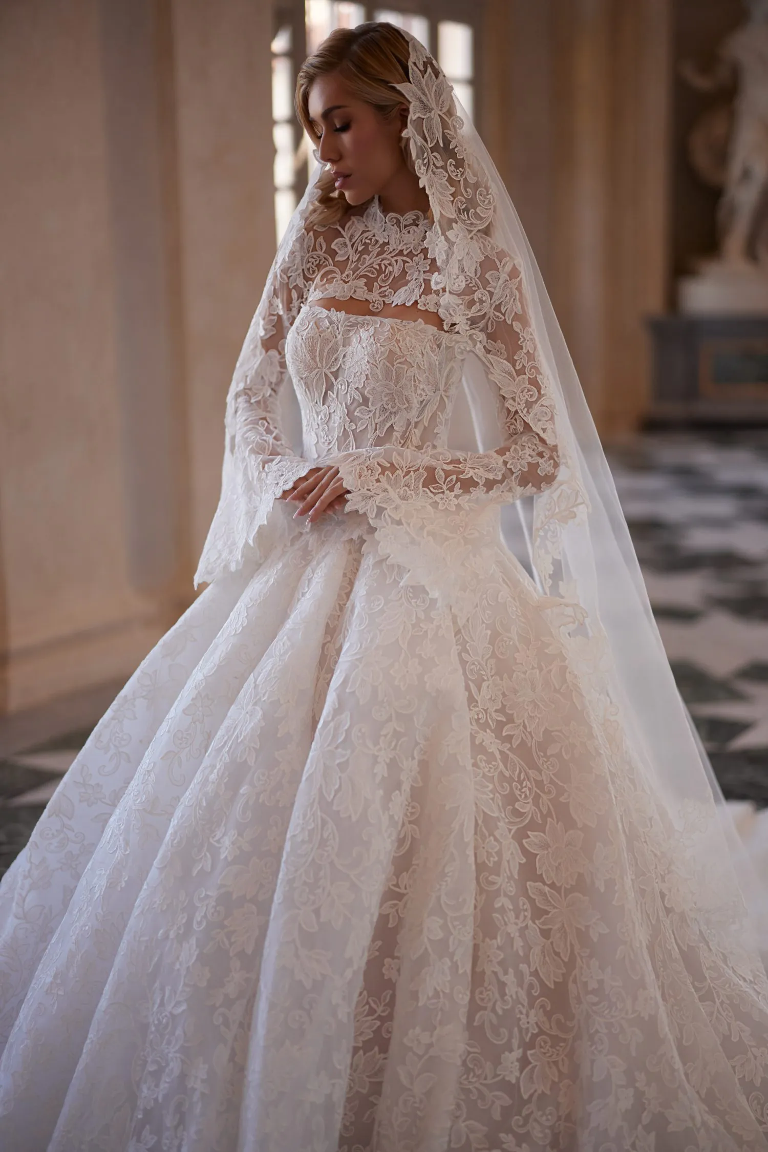 THE ROYAL CHAPTER 2027 by Ricca Sposa is a luxury bridal collection defined by refined silhouettes, couture construction, and elegant detailing.